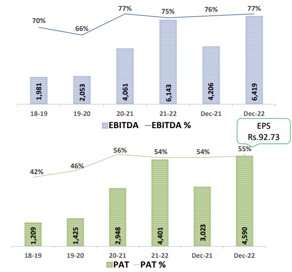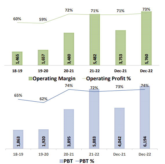 The NSE consolidated financials from 2018 to 2022 has highlighted a constant story of expanding the stock exchange market in India. This has been obvious in the increasing operating profit, Price Before Tax (PBT), Price After Tax (PAT), and EBITDA, as well as Earnings Per Share (EPS). Moreover, the graph below in the financial reports by NSE for the December quarter compares the market indicators between FY22 and FY23. The operating margin, profit and EBITDA increased by an average of 1.5 times which is a significant growth.