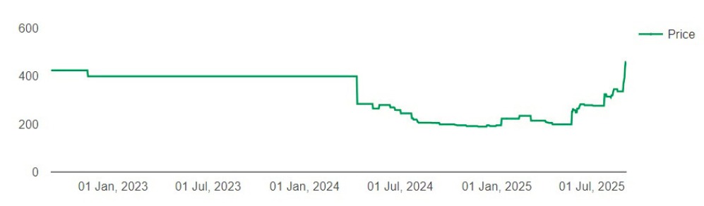 For the last month, there were strong signals of NCDEX raising a potential investment. This signal was given a green light with the recent Rs 770 crores funding, generating a lot of positive investor sentiment. NCDEX Unlisted Share, which was trading around Rs 320 per share in the first week of August 25 is now trading at Rs 483 in the first week of September 25, which is a 50% increase in just one month.