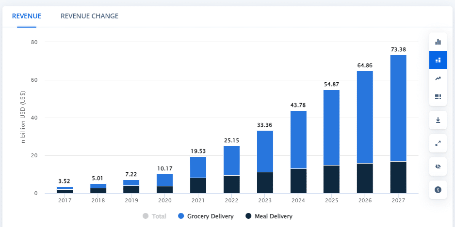 There is a reason that Swiggy continued to persevere through the phases of losses. It is because the Indian food and grocery delivery market is growing at a rapid rate. The total revenue of the food delivery market in India is expected to grow at a CAGR of 21.78% from 2023 to 2027. Moreover, the grocery delivery market is expected to grow at a rate of 38.2% in 2024.